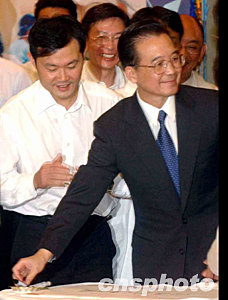 國(guó)務(wù)院總理溫家寶六月三十日抵達(dá)沙田威爾斯親王醫(yī)院視察。圖為香港醫(yī)院管理局行政總裁何兆偉(左)陪同溫總理。中新社記者 錢興強(qiáng) 攝