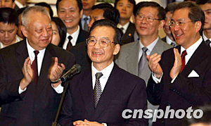 六月三十日,國務(wù)院總理溫家寶在香港大學(xué)發(fā)表講話。中新社記者 潘索菲 攝