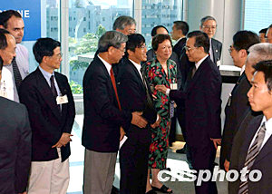 六月三十日,國務(wù)院總理溫家寶參觀香港大學(xué)醫(yī)學(xué)院,并與教授們談笑。中新社記者 潘索菲 攝