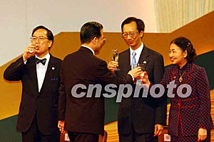儀式后,溫總理與行政長(zhǎng)官董建華等人將會(huì)出席在香港會(huì)議展覽中心大會(huì)堂的慶祝酒會(huì)。