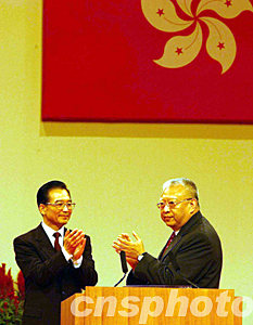 溫家寶說(shuō)∶今天是香港回歸祖國(guó)六周年的喜慶日子。在香港萬(wàn)眾一心戰(zhàn)勝SARS、奮力重振經(jīng)濟(jì)的重要時(shí)刻,我代表中央政府和全國(guó)各族人民,向香港特別行政區(qū)政府、香港同胞和各界人士表示熱烈祝賀和良好祝愿。