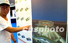 北京奧林匹克公園國(guó)家游泳中心設(shè)計(jì)方案三日在北京國(guó)際會(huì)議中心進(jìn)行公開展示。圖為獲得優(yōu)秀設(shè)計(jì)方案獎(jiǎng)的美國(guó)Rafael Vinoly Architects建筑設(shè)計(jì)公司參賽作品。中新社記者 廖文靜 攝