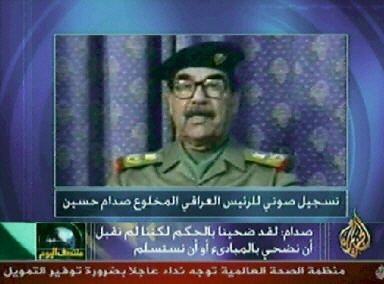 據(jù)法新社報(bào)道,卡塔爾半島電視臺(tái)4日播放了一盤錄音帶,半島臺(tái)聲稱這盤錄音帶是薩達(dá)姆于6月14日錄制的。