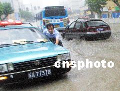 今天早晨可以看到,南京城區(qū)幾乎所有路面都有積水,不少地段水深超過(guò)半個(gè)自行車輪子,下關(guān)一些街道的積水甚至深達(dá)一米多,公交及出租車在水中緩慢移動(dòng)著,路邊隨處可見排氣管進(jìn)水拋錨的車輛。在新街口至中央路一線,多處路段水深過(guò)膝,不少趕時(shí)間的市民們艱難地涉水前行。