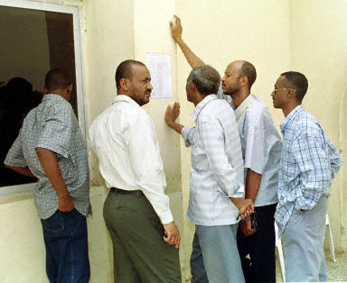 蘇丹航空公司的一架波音737客機(jī)8日凌晨4時(當(dāng)?shù)貢r間)在蘇丹港機(jī)場附近墜毀,除一名兩歲兒童幸存外,機(jī)上其余105名乘客和11名機(jī)組人員喪生。圖為遇難航班旅客的親屬在蘇丹航空公司查看遇難者名單。