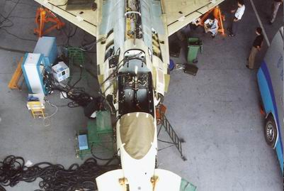 。犚胍欢谩俺摺钡恼骖伩刹皇且患唵蔚氖拢哼M入成飛試飛站之前,工作人員就提醒記者種種注意事項;通過武警層層把關的大門后,試飛場左側(cè)的一機庫門前又見到兩名武警持槍而立……走進機庫,“這就是‘超七’試飛站!彪S行的工作人員輕聲告訴記者。