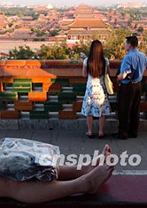 仲夏日的午后,許多游客慕名來到北京景山山頂俯瞰故宮美景,而在此納涼的一些市民陋習(xí)不改,大煞風(fēng)景。中新社記者:張煒