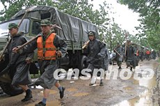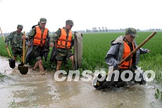 清晨趕到焦崗湖大堤的南京軍區(qū)某集團(tuán)軍官兵,連營(yíng)房都沒(méi)進(jìn),就沖到了一線,為焦崗湖防險(xiǎn)搭起了第二道堤防線。