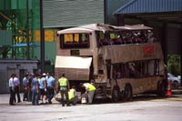 據(jù)香港大公報報道,出事九巴殘骸于前日下午已被運(yùn)至大嶼山車輛扣留中心,并于昨日交由警方﹑運(yùn)輸署及九巴公司聯(lián)手進(jìn)行檢查。