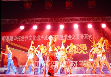這臺晚會7點30分由大型舞蹈“盛世年華”開場,“梅花三弄”、“龍的傳人”、“陽光征程”等歌舞,逐漸把晚會推向高潮。9點整,2600個組合的煙火禮花齊聲鳴放,把玄武湖畔、紫金山麓映照得萬紫千紅,整個過程一直持續(xù)1小時,這是南京歷史上燃放煙火規(guī)模最大的一次;盍λ纳涞奈枳,五彩繽紛的焰火,熱辣涌動的人群,組成一個激情流火的仲夏夜。