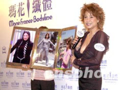 實力派女歌星甄妮7月14日在香港出席《瑪花纖體》記者會,在會上簽約加入成為《瑪花》代言人行列,興奮展示纖體后玲瓏浮凸的優(yōu)美身段。中新社記者:鄧慶樂