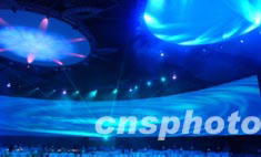 圖為宴會之前,試演的多媒體。