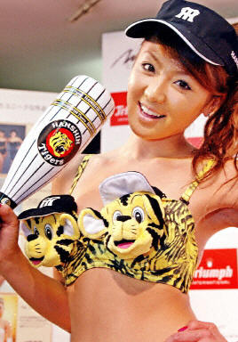 16日,日本內衣生產廠勝利國際公司女孩展示可愛Q版老虎圖案的女性內衣和棒球系列產品。