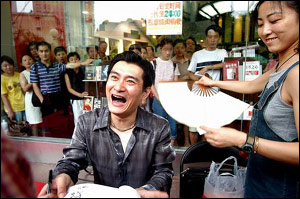一本《誰搞垮了演藝事業(yè)》引爆了整個娛樂圈,昨天“罪魁禍首”黃安卻安然地來到南京書城為此書作簽售。下午2點半,黃安準時出現(xiàn)在書城門口,他的成名曲《新鴛鴦蝴蝶夢》也即時響起。聞訊而至的“黃迷”們把現(xiàn)場圍了個水泄不通,而主持人出身的黃安更是把氣氛調節(jié)得火爆異常。雖然現(xiàn)身僅短短的10幾分鐘,但黃安卻向記者們又抖出了許多猛料。