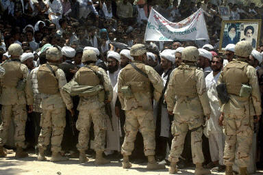 示威者在納杰夫市內(nèi)一主要清真寺門前集合,步行到由美國(guó)海軍陸戰(zhàn)隊(duì)把守的市政廳門前,并高呼“不要美國(guó)”等口號(hào)。有些憤怒的伊拉克人還向美國(guó)士兵投擲石塊,美軍沒(méi)有開槍還擊。