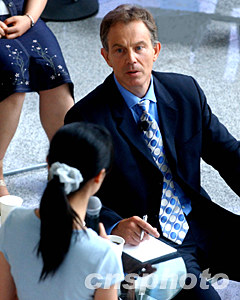 中新社北京七月二十二日電(記者齊彬)今天上午十點(diǎn),英國首相布萊爾在清華大學(xué)校長顧秉林的陪同下,來到這所知名學(xué)府,與清華學(xué)子們進(jìn)行一場長達(dá)四十五分鐘的面對(duì)面座談會(huì),并回答提問。
