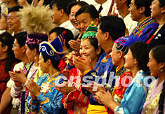 中國共青團(tuán)第十五次全國代表大會二十二日在北京開幕,身著艷麗服飾的少數(shù)民族代表成為會場上靚麗的風(fēng)景。中新社記者:滿會喬