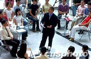 眼下已是暑假,可清華大學(xué)舜德樓一樓大廳卻熱鬧異常,今天上午,一場別開生面的圓桌座談會(huì)正在這里舉行,座談會(huì)的主角是正在中國訪問的英國首相布萊爾與百名清華學(xué)子。