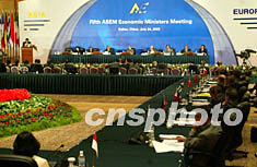 第五屆亞歐經(jīng)濟(jì)部長會議七月二十四日正式在大連開幕。來自亞洲的中國、日本、韓國和東盟七國,歐盟十五國和歐盟委員會出席會議。中新社記者:鄭萍萍