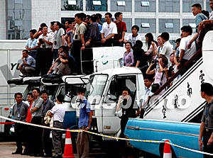 皇馬足球俱樂(lè)部到昆明集訓(xùn),令昆明市的球迷格外激動(dòng)。圖為機(jī)場(chǎng)工作人員中的球迷占地利之便,在皇馬抵達(dá)昆明時(shí)希望能盡快一睹皇馬風(fēng)采。中新社記者:納家驊