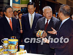 七月二十五日,香港行政長官董建華參觀正在此間舉行的“香港家庭用品展及香港禮品及贈(zèng)品展”。作者:潘索菲