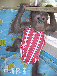 浙江今年經(jīng)歷了五十年一遇的高溫氣候。然而在飼養(yǎng)員的精心照料下,杭州動(dòng)物園里的珍稀動(dòng)物度過一個(gè)愜意的酷暑。圖為中國目前僅有二十余只的珍稀動(dòng)物紅毛猩猩正在舒適地享受空調(diào)。