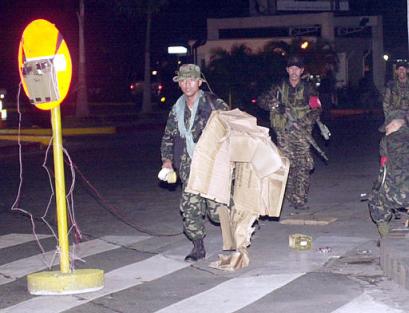 幾小時(shí)以后,數(shù)十名武裝軍人于27日凌晨占據(jù)了馬尼拉市金融區(qū)內(nèi)的一座主要商業(yè)中心,并在周圍安放炸藥。