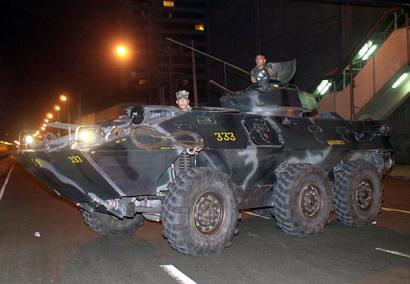 據(jù)法新社報(bào)道,阿羅約發(fā)表全國(guó)電視講話說:“我限令你們?cè)诮裉煜挛缥妩c(diǎn)之前投降繳械,回到兵營(yíng)去!