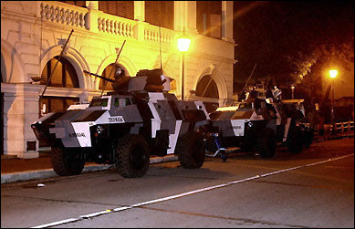 圖:菲律賓政府軍裝甲車守衛(wèi)“總統(tǒng)府”