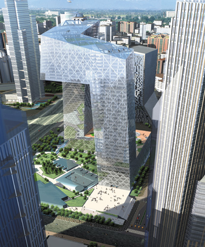 專家評委認(rèn)為這是一個不卑不亢的方案,既有鮮明的個性,又無排他性。作為一個優(yōu)美、有力的雕塑形象,它既能代表新北京的形象,又可以用建筑的語言表達(dá)電視媒體的重要性和文化性。其結(jié)構(gòu)方案新穎、可實施,會推動中國高層建筑的結(jié)構(gòu)體系、結(jié)構(gòu)思想的創(chuàng)造。