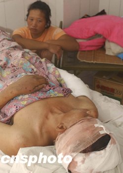如果不是細(xì)心人帶領(lǐng),我們很難在辛集市第一人民醫(yī)院找到爆炸后的燒傷者。在這里,燒傷病人是和醫(yī)院的普通病人住在一起的。經(jīng)好心人指點(diǎn),我們徑直上了醫(yī)院的七樓。這里的大夫語(yǔ)氣不是很客氣:“想采訪去八樓,那里才是厲害的。”那么,這邊輕的又如何呢?
