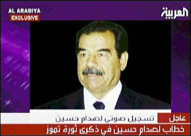 薩達(dá)姆的兒子庫賽和烏代是在7月22日在和美軍士兵的一次槍戰(zhàn)中被打死的。29日播出的錄音帶也是在一周內(nèi)出現(xiàn)的第二次據(jù)稱來自薩達(dá)姆的錄音講話。