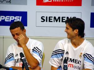 7月30日下午1時(shí),皇馬在紅塔基地召開了第六天的例行新聞發(fā)布會(huì),出席新聞發(fā)布會(huì)的皇馬球員有貝克漢姆、索拉里、塞拉德斯、塞薩爾。新聞發(fā)布會(huì)上,貝克漢姆再次成為媒體追逐的焦點(diǎn),其他球員則顯得有些無所事事。圖據(jù)云南日?qǐng)?bào)網(wǎng)站