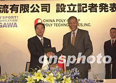 中國保利集團與日本佐川急便30日在東京宣布,他們將聯(lián)手投資一千多萬美元,在深圳成立中國首家中外合資綜合性物流企業(yè)“保利佐川物流有限公司”。圖為保利集團總經理賀平與佐川急便社長真鍋邦夫交換合同文本。中新社記者:陶光雄