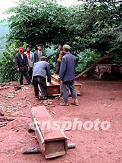 圖:云南大姚地震區(qū)村民為死難者料理后事