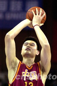 圖:中美男籃熱身賽 姚明場(chǎng)上表現(xiàn)出色