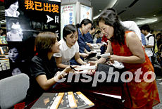 因常年出入世界危險地帶采訪而在中國大陸聞名的香港鳳凰衛(wèi)視女記者閭丘露薇,8月2日下午在北京西單圖書大廈為她的新書“我以出發(fā)”發(fā)行簽名售書,有上千名不同年齡的讀者慕名而來。該書由北京出版社出版,首次就印刷了五萬冊。中新社記者:任晨鳴