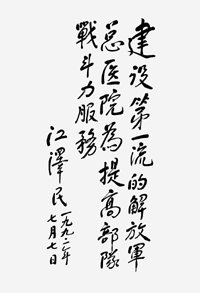 文章還講述了這樣一個(gè)小故事:1993年,解放軍總醫(yī)院建院40周年。醫(yī)院請(qǐng)江澤民同志為醫(yī)院題寫院名:“解放軍總醫(yī)院”,江澤民同志在題詞時(shí),意味深長(zhǎng)地說:“我看,還要加上‘中國(guó)人民’四個(gè)字!