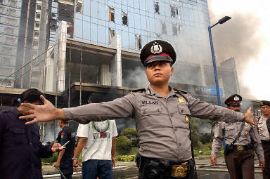 萬豪大酒店附近有數家外國駐印尼大使館。目前,酒店大樓濃煙不斷,警方和消防人員已趕到出事現場,正在維持治安和進行滅火。