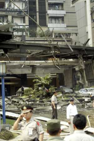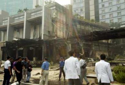 8月5日,印尼首都雅加達南部的中心商業(yè)區(qū)萬豪酒店發(fā)生劇烈爆炸。周圍幾幢建筑也受到爆炸沖擊。據印尼警方稱,到目前為止至少有8人在爆炸中死亡,另有103人重傷。(春風)