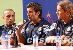 八月六日晚,香港舉行歡迎西班牙皇家馬德里足球隊抵港記者會。圖為“皇馬 ”球星在記者會上。中新社記者:錢興強