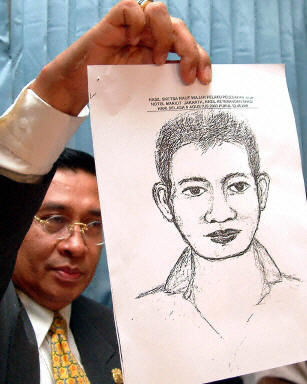印尼警察總長巴赫蒂亞爾說,警方已經(jīng)勾畫出購買肇事車輛和執(zhí)行爆炸任務(wù)的疑犯的頭像。他透露,兩個沒有表明身份的人從一名車主那里購買了那輛藍色吉普車,雖然他們抹去了汽車和發(fā)動機的號碼,但警方還是查出了車的來源。