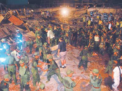 據(jù)了解,該倒塌的“廠房”是湖里區(qū)禾山鎮(zhèn)高林村村民林天厚自建、準備用于出租的兩層“廠房”,建造面積兩千平方米。事發(fā)當時,正在進行澆灌水泥作業(yè)施工工人八十余人,主要來自貴州、四川、江西、安徽等地,其中四十余人在事故發(fā)生后安全脫身。福建省省長盧展工獲悉這一事故后,已作出重要批示,要求廈門全力組織力量進行搶救,做好善后工作,并舉一反三,結合安全工作進行認真檢查。