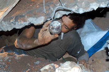 省委常委、市委書記鄭立中趕到了,受困工人的安危緊緊牽動著他的心。他焦急地問湖里區(qū)委書記何清秋:“還有多少人被壓在磚礫里?”當后坑派出所的民警陳德福掰著指頭報出受壓的人數(shù)后,鄭立中果斷地對在場指揮的市消防支隊領導說,要馬上弄清還埋在鋼筋水泥板下的民工的方位。接著他詢問了消防戰(zhàn)士搶救裝備的情況,得知在市委市政府的重視下,我市消防部隊的裝備是一流的,能夠應付急險搶救的需要,鄭立中放心地點了點頭。同時他讓有關部門領導立即向地質(zhì)勘探部門請求探測設備的支援,他還請市安全監(jiān)督局的同志了解外地搜救的辦法。隨后鄭立中把有關部門領導召集到身邊說:“人命關天,我們要想盡一切辦法救出每一位受困工人。”鄭立中詳細詢問事故搶救情況,多次向責任區(qū)民警、房東和脫險工人核實受困工人準確人數(shù)。他再三強調(diào),一定要調(diào)查精確,確保每個受困工人都能施救成功。