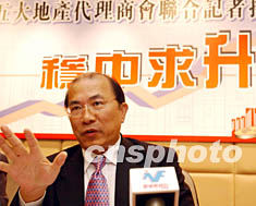 八月十四日,香港五大地產(chǎn)代理商會為救樓市向政府進(jìn)言,建議務(wù)求樓市“穩(wěn)中求升”。圖為香港地產(chǎn)代理專業(yè)協(xié)會有限公司會長鄧意民在記者會上暢所欲言。作者:潘索菲