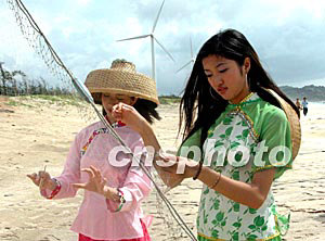 八月十四日,第二屆維可倚南方新絲路模特大賽入圍的三十名選手在汕尾紅海灣進(jìn)行外景拍攝,靚扮南海魚家女。作者:劉衛(wèi)勇