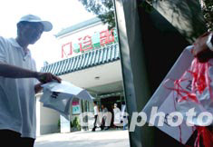 北京地壇醫(yī)院八月十六日送走最后兩位非典患者康復(fù)出院,撤銷紅色隔離線恢復(fù)門診。中新社記者:賈國榮