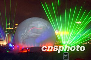為振興香港旅游業(yè)的發(fā)展,“香江明珠激光匯演”八月十七日在香港維多利亞港畔展示,圖為新設(shè)立的直徑達(dá)七層樓高的半透明珍珠球體。中新社記者:錢興強(qiáng)