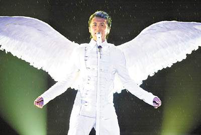 謝霆鋒自3月復(fù)出以來,就一改以往一味扮酷的風(fēng)格,平易近人了很多。16日晚,謝霆鋒除了在彈唱某些勁歌時保留了很酷的表情,在演唱情歌時,他的嘴邊時常掛著微笑。而在唱歌之余,他更一反常態(tài)地努力說笑話、搞氣氛。與以往以黑為主的服裝造型不同,謝霆鋒前晚先后以綴有閃鏈的黑牛仔西服、裝有一對白色大翅膀的天使L OOK、銀色及白色背心造型出場。其中,袒露胸肌的牛仔西服及純白天使L OOK最具看頭,忽而性感、忽而清純的模樣看得歌迷大呼過癮。