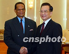 中新社北京八月十八日電(記者齊彬)中國(guó)國(guó)務(wù)院總理溫家寶今天會(huì)見了到訪的第五十八屆聯(lián)合國(guó)大會(huì)當(dāng)選主席、圣盧西亞外交、國(guó)際貿(mào)易和民航部長(zhǎng)朱利安·亨特。賓主雙方就當(dāng)前國(guó)際形勢(shì)、如何在和平與發(fā)展領(lǐng)域發(fā)揮聯(lián)合國(guó)的作用等問(wèn)題交換了看法。